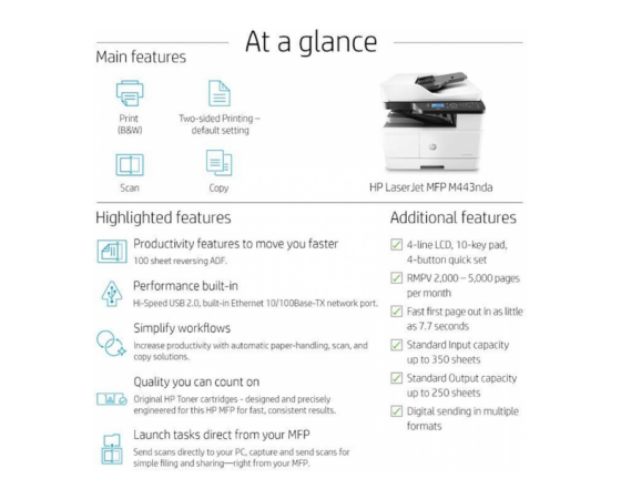 Večfunkcijska laserska naprava HP LaserJet MFP M443nda - 8AF72A#B19