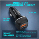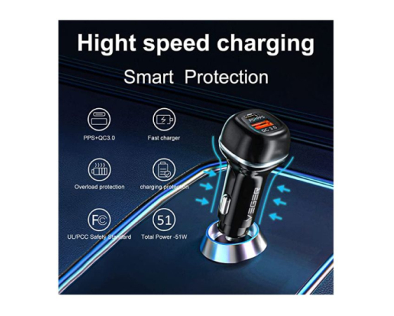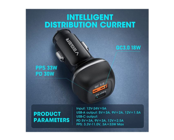 VEGER avtopolnilec CC62 USB+USB-C PD, QC3.0 51W