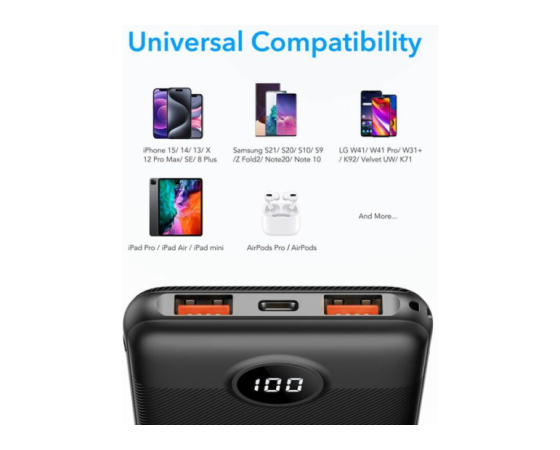 VEGER-jeva močna prenosna baterija je široko združljiva z večino glavnih naprav, kot so iPhone, iPad Pro, Samsung, Pixel itd.