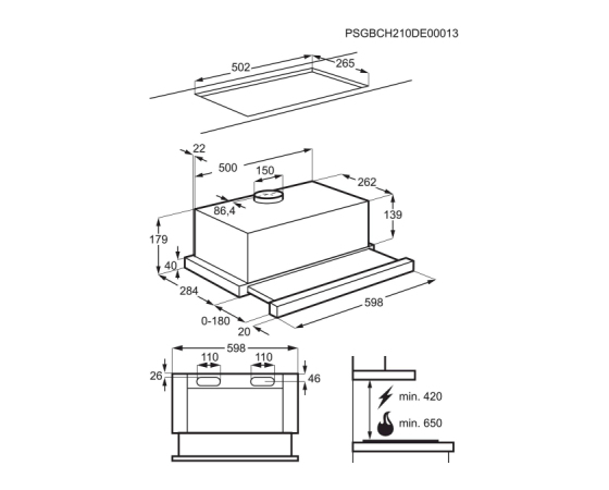 Vgradna izvlečna kuhinjska napa AEG DPB3632S, 60 cm