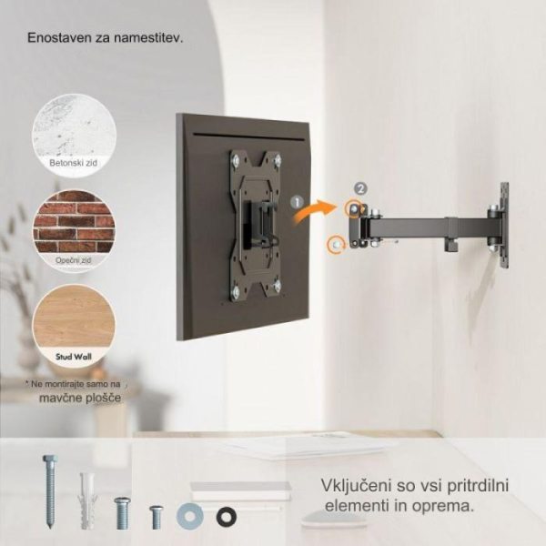 Lahko se namesti na trdne stene in stene z enim nosilcem.