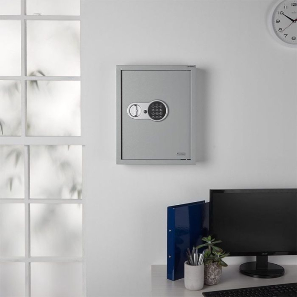 Če iščete varen in dobro organiziran način za shranjevanje ključev, je ta digitalni sef znamke VonHaus popolna rešitev. Ponuja zanesljivo zaščito pred nepooblaščenimi osebami ter urejen sistem shranjevanja ključev za tiste z dovoljenim dostopom. Namestitev je preprosta – priloženi so vsi pritrdilni elementi za stensko montažo.