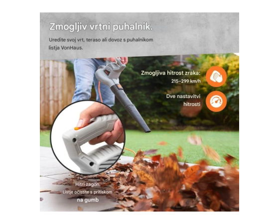 S puhalnikom listja VonHaus boste svoj vrt iz neurejene površine, polne listja, hitro spremenili v urejen zunanji prostor.