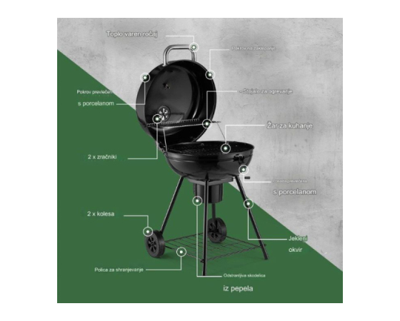 Ne glede na to, ali imate raje dimljen okus žara na drva ali pa imate ravno veliko vrečo oglja, ki jo morate porabiti - žar s kotličkom lahko napolnite s tistim, kar vam ustreza. Dodatno gorivo imejte vedno pri roki na spodnji odlagalni polici, da boste lahko brezskrbno pekli na žaru.