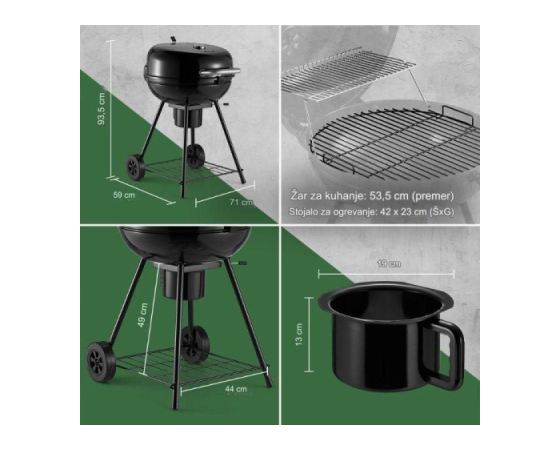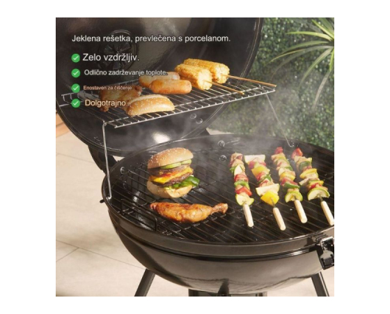 Tradicionalna okrogla oblika žara ni le očarljiva na pogled, temveč omogoča tudi prostor za velik žar na oglje s premerom 53,5 cm. Poleg tega porcelanast premaz z visokotemperaturnim prašnim premazom zagotavlja maksimalno zadrževanje in porazdelitev toplote. Zato bodite prepričani, da se bodo klobase ob robu prav tako lepo hrustljavo zapele!