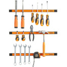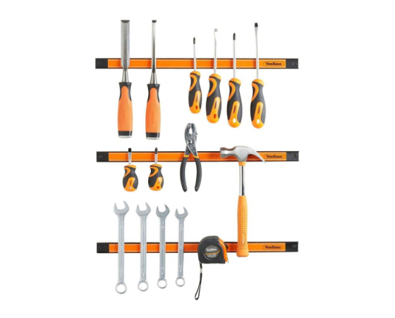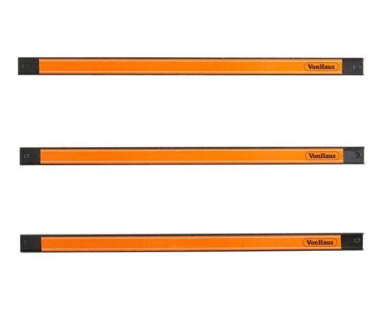 VonHaus magnetni nosilec za orodje vsebuje komplet treh robustnih magnetnih trakov, ki se s priloženimi vijaki zlahka pritrdijo na steno in nudijo priročno odlagališče za orodje kot so izvijači, ključi in drugo. Vsak trak meri 60cm