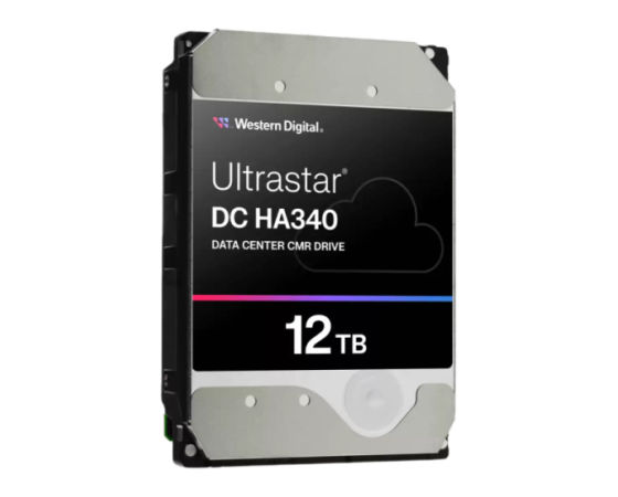 WD Ultrastar DC HA340 model WUS721212BLE6L4 je 12 TB trdi disk, zasnovan za zanesljivo delovanje v zahtevnih podatkovnih in strežniških okoljih. Ima 3,5-palčni format in uporablja SATA 6 Gb/s vmesnik s hitrostjo vrtenja 7200 vrt/min. Disk je opremljen s 512 MB predpomnilnika in uporablja tehnologijo CMR za stabilno ter predvidljivo delovanje pri zaporednih in naključnih obremenitvah. Namenjen je neprekinjenemu delovanju 24/7 in je prilagojen uporabi v večdiskovnih sistemih, kjer so pomembni zanesljivost, dosledna zmogljivost in zaščita pred vibracijami.