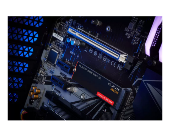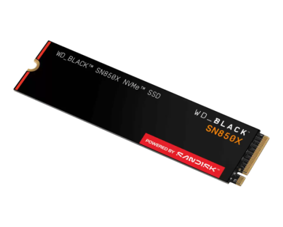 SanDisk WD Black SN850X (model WDS100T2X0E) je M.2 2280 NVMe SSD z zmogljivostjo 1 TB, optimiziran za najzahtevnejše igre, ustvarjanje vsebin in računske obremenitve. Ponuja izjemne sekvenčne hitrosti branja (do 7 300 MB/s) in pisanja (do 6 600 MB/s) prek PCIe Gen4×4, naključne IOPS zmogljivosti do 1 000 000, aktivno hlajenje preko opcijskega hladilnika in izboljšano vzdržljivost. SSD je združljiv s PCIe Gen3 in je podprt z WD Black Dashboard za optimizacijo delovanja.