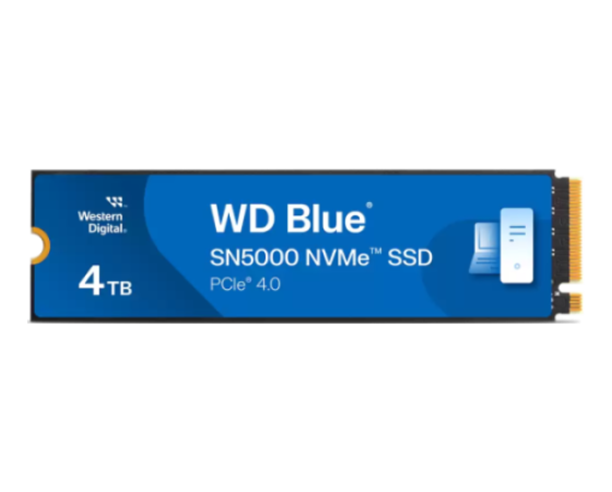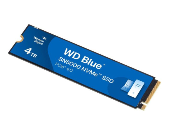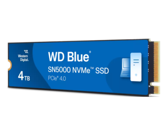 SanDisk WD Blue SN5000 (WDS400T4B0E) je visokozmogljiv 4 TB NVMe SSD v formatu M.2 2280 z vmesnikom PCIe Gen4×4. Omogoča sekvenčne hitrosti branja do 5 500 MB/s in pisanja do 5 000 MB/s. Uporablja 112‑slojno 3D TLC NAND (Kioxia BiCS5) brez DRAM-a (HMB), s kontrolerjem WD Polaris 3 (A101‑000172‑A1) in tehnologijo nCache 4.0. Namenjen je ustvarjalcem, profesionalcem in vsem, ki potrebujejo visoko kapaciteto z zanesljivostjo. Združljiv je z Windows, Linux in MacOS ter podprt z WD SSD Dashboard.