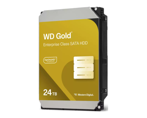 WD242KRYZ iz linije WD Gold je enterprise razreda trdi disk s kapaciteto 24 TB, primeren za strežnike in podatkovne centre. Uporablja SATA 6 Gb/s vmesnik, se vrti pri 7200 RPM in ima 512 MB predpomnilnika, kar omogoča učinkovito delo z velikimi podatki. Disk uporablja CMR zapisno technologijo, HelioSeal® za nižjo porabo in optimizacijo za visoke obremenitve (550 TB/leto) ter Rotational Vibration Safeguard za stabilnost. MTBF znaša do 2,5 mio ur, primerno za nepremišljeno 24/7 delovanje.