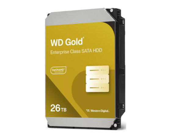 WD WD261KRYZ iz serije WD Gold je enterprise razreda trdi disk z zmogljivostjo 26 TB, zasnovan za zahtevne strežniške in podatkovne centre. Uporablja SATA 6 Gb/s vmesnik, vrti se pri 7200 RPM in ima 512 MB predpomnilnika. Tehnologiji HelioSeal® in Rotational Vibration Safeguard zagotavljata stabilnost in učinkovitost, disk pa podpira delovno obremenitev do 550 TB/leto ter ima MTBF 2,5 milijona ur.