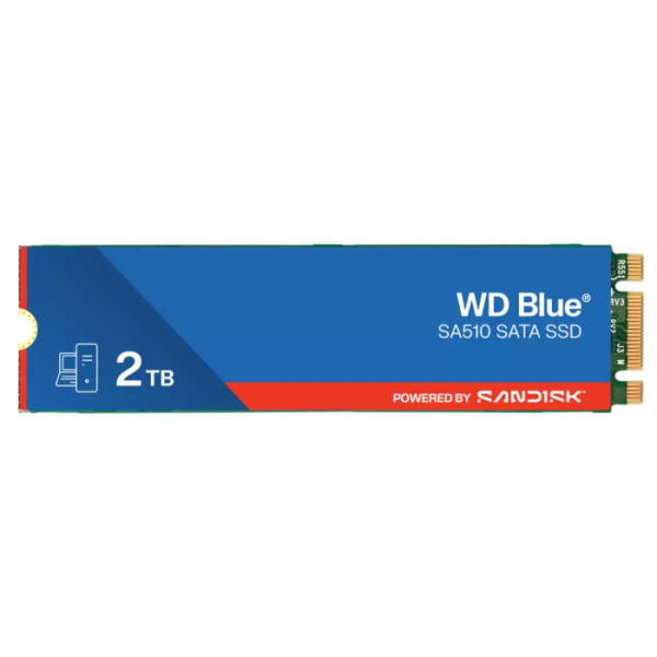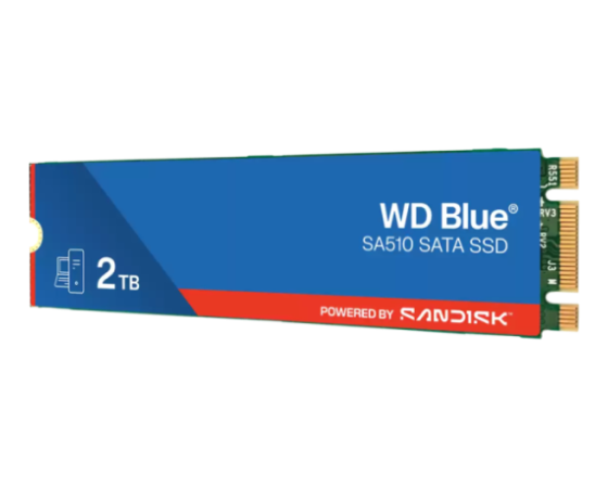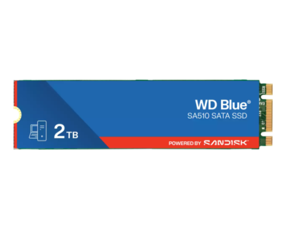 SanDisk WD Blue SN5000 (WDS200T3B0B) je zmogljiv 2 TB NVMe SSD v formatu M.2 2280 z vmesnikom PCIe Gen4×4. Dosega sekvenčno branje do 5 150 MB/s in pisanje do 4 850 MB/s. Uporablja 112‑slojno 3D TLC NAND (Kioxia BiCS5) in kontroler WD Polaris 3 (A101-000172‑A1). SSD ima pSLC predpomnilnik nCache 4.0, brez DRAM-a (HMB), in je optimiziran za ustvarjalno delo. Združljiv je z Windows, Linux, MacOS ter podprt z WD SSD Dashboard.
