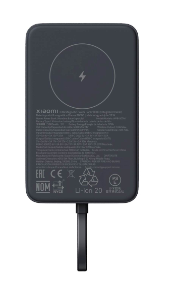 Xiaomi 33W magnetna prenosna baterija 10000 Črn, 7.5W brezžično, 30W žično polnjenje - 62337