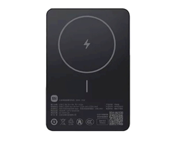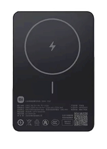 Xiaomi magnetna prenosna baterija 5000 mAh črna, Do 20W (žični USB-C) / Do 15W (brezžično)