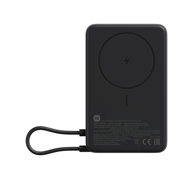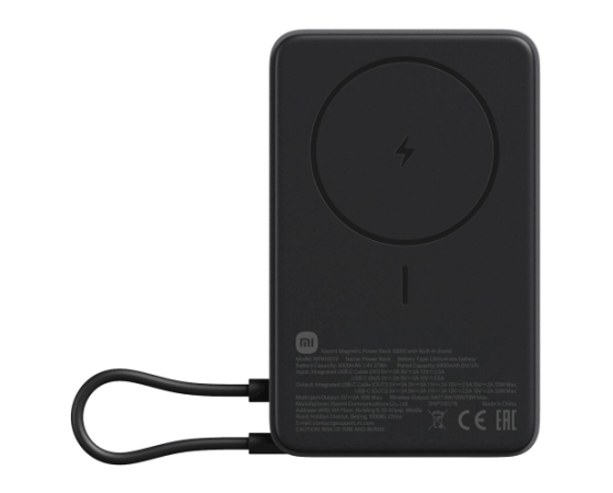 Xiaomi Magnetni Power Bank 10000mAh s stojalom, indikator baterije, 33W izhod, Črn - 71806
