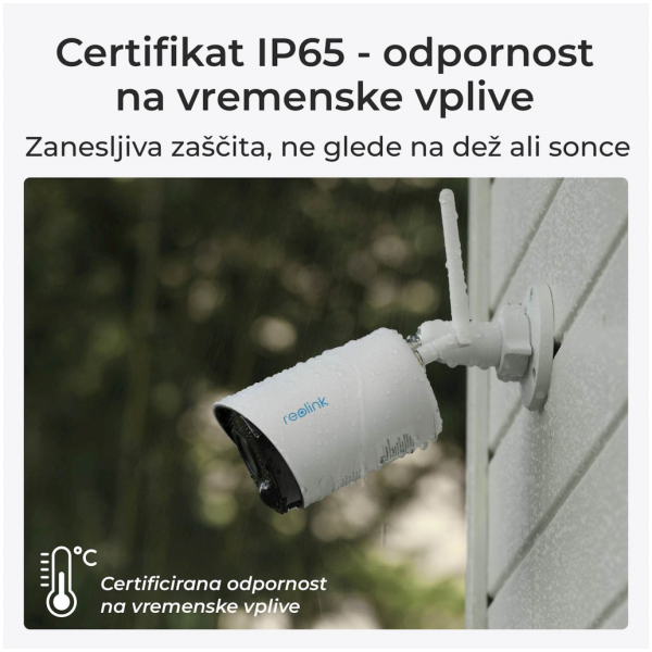 Specifikacije: https://reolink.com/product/argus-series-b320/?gad_source=1&gclid=CjwKCAjwyo60BhBiEiwAHmVLJZic5P-7DkJbRl51uS6X3LA9uTcXf7 Namen uporabe: Kamere za osnovno uporabo Senzor kamere: 3 MP Ločljivost kamere: od FHD do 4K Tip kamere: Fiksna Povezava kamere: Wi-fi Napajanje kamere: napajanje z baterijo Montaža kamere: Zunanja Vgrajen IR senzor: da, nočno snemanje do 10m Reža za spominsko kartico: da, podpora do 128 Gb MicroSD spominsko kartico Vgrajen mikrofon: da, dvosmerni zvok z vgrajenim zvočnikom Senzorika: zaznavanje PIR; zaznavanje gibanja; odkrivanje oseb; odkrivanje vozil; odkrivanje živali Shranjevanje posnetkov: Podpira Reolink Cloud (na voljo v nekaterih državah) Osnovne informacije: Takojšnja e-poštna opozorila in potisna obvestila Dodatne informacije: Lahko se napaja z napajalnikom 5V/2A ali solarnim panelom Reolink Garancija v mesecih: 24