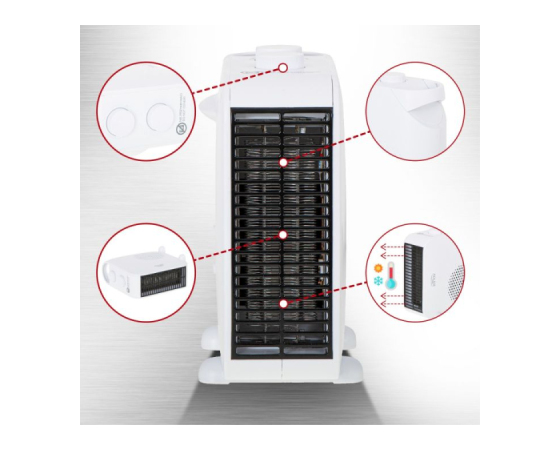 Večnamenski ventilatorski grelnik, ki ga lahko uporabljaš tako pozimi kot poleti! Deluje z dvema stopnjama gretja, temperaturo pa lahko preprosto nastaviš s termostatom. Tako lahko vedno prilagodiš toploto svojim potrebam. Posebnost naprave je, da deluje tudi kot hladilni ventilator – zato pride prav tako v vročih kot v hladnih dneh. Za dodatno varnost poskrbi zaščita pred pregrevanjem, uporabiš pa ga lahko tako v ležečem kot tudi v stoječem položaju.