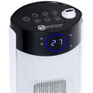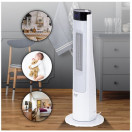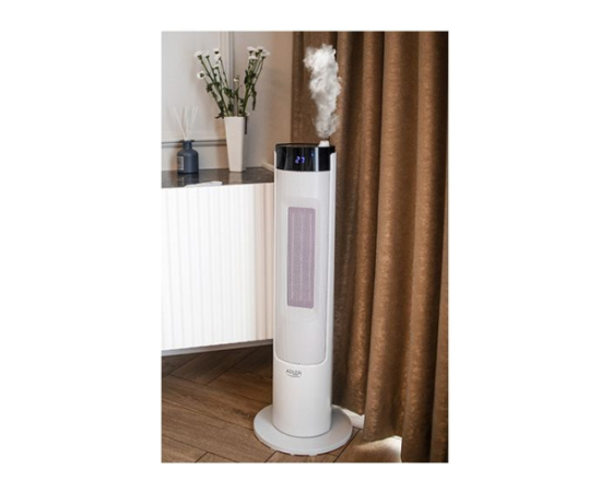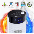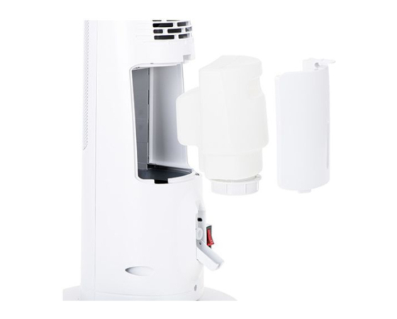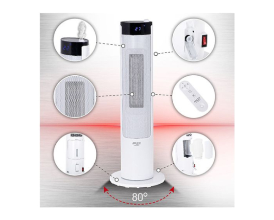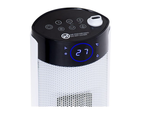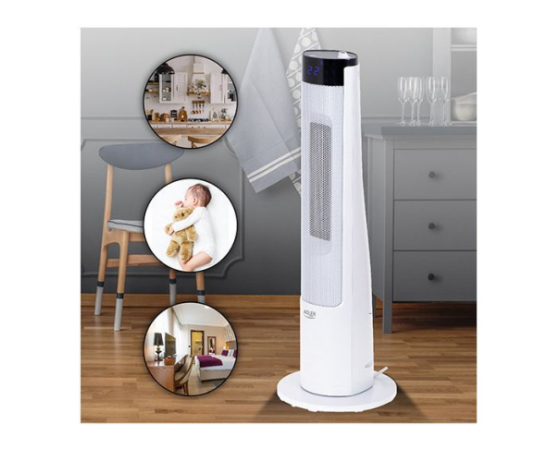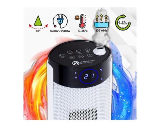 Stolpni grelnik z učinkovitim keramičnim grelnim elementom, LCD-zaslonom, funkcijo vlažilnika, ventilatorjem in daljinskim upravljalnikom. Vgrajeni termostat samodejno vzdržuje želeno temperaturo v prostoru tako, da se naprava po potrebi vklaplja in izklaplja. Grelnik ima časovnik, ki omogoča nastavitev delovanja od 1 do 12 ur. LCD-prikazovalnik prikazuje izbrano temperaturo v območju 10–35 °C.