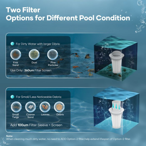 Zajame delce že od 3 mikronov in ohranja vaš bazen kristalno čist – tudi v zahtevnih pogojih, kot so alge, prah ali pesek.