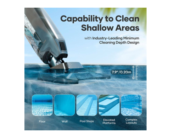 Se mučite s čiščenjem plitvih delov bazena? Spoznajte Aiper Pilot X1, ki z lahkoto deluje že pri globinah od 0,2 m.