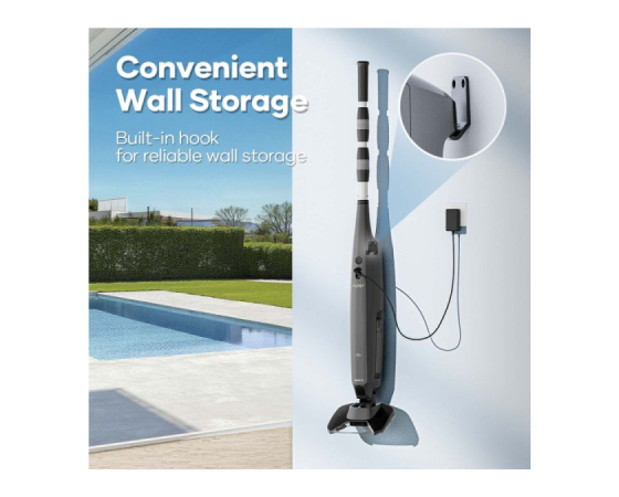 Shranjevanje naprave Pilot X1 je izjemno preprosto zaradi stenske zasnove. Poenostavite svojo rutino čiščenja in vzdrževanja ter ustvarite novo raven urejenosti in estetike okoli vašega bazena.
