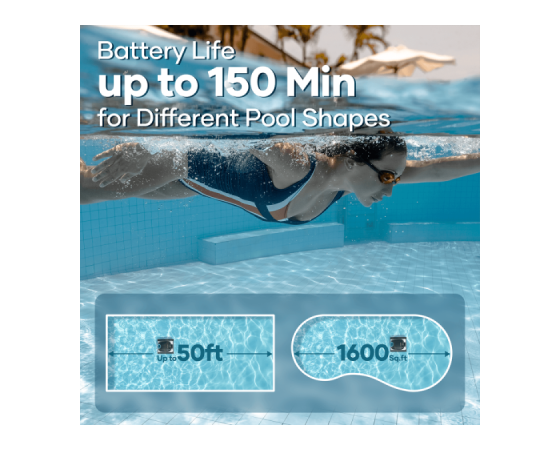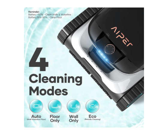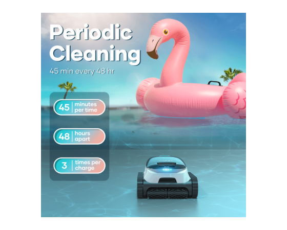 Vaš Aiper robotski sesalnik čisti 45 minut vsakih 48 ur, nato preide v način nizke porabe energije. Ta cikel se ponavlja, kar zagotavlja, da bo vaš bazen čist skozi celoten teden. Ob koncu tedna je pripravljen za plavanje, ne za čiščenje.