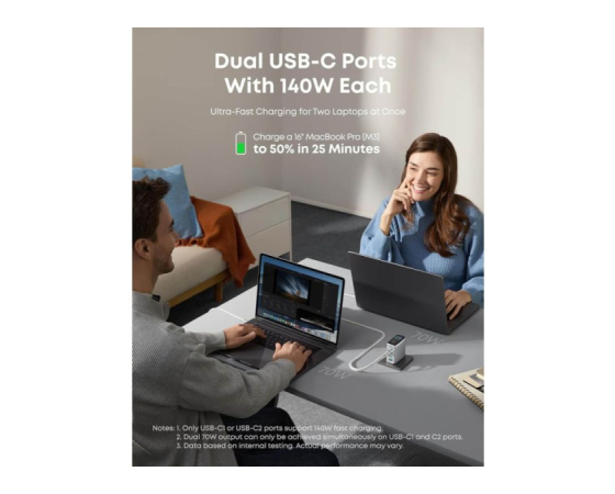 Uživajte v udobju sočasnega napajanja štirih naprav z napredno GaN tehnologijo, ki zagotavlja optimalno zmogljivost.