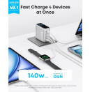 Anker polnilec (140 W, 4 priključki, PD 3.1), USB-C v USB-C kabel dolžine 1,5 m (240 W), uporabniški priročnik, 24-mesečno garancijo ter prijazno podporo za stranke.