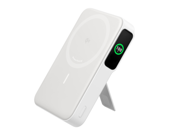Z zmogljivimi 10.000 mAh si zagotovite 1,8 polnjenj za vaš iPhone 15 Pro in uživajte v prostoročnem gledanju z vgrajenim stojalom.
