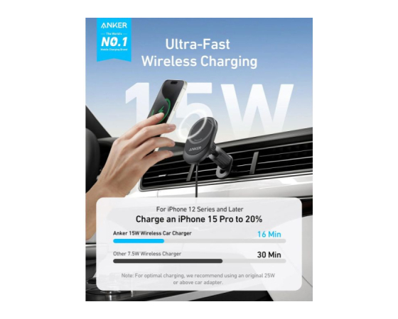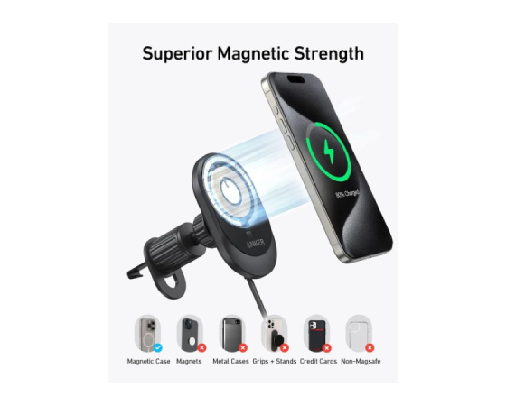 Anker MagGo brezžični avtomobilski polnilec (podloga z vgrajenim USB-C kablom),