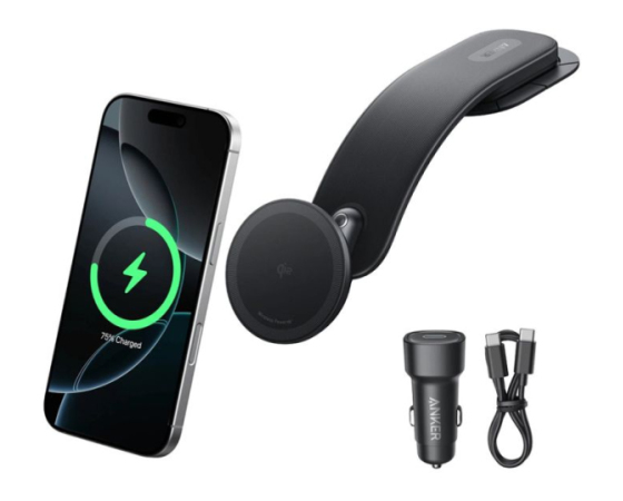 Kaj je v paketu Anker Nano brezžični avtomobilski polnilnik (magnetni, z odstranljivo blazinico), 25 W avtomobilski adapter, USB-C na USB-C kabel dolžine 1 m, 2 trakova na ježka, 2 čistilni krpici, 24-mesečna garancija in prijazna podpora za stranke.