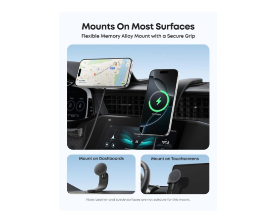 Prilagodljiva montaža in popoln kot pogleda Zasnovan z nosilcem iz spominske kovinske zlitine, ki se prilagodi ukrivljenim armaturnim ploščam in zaslonom na dotik. Upogne se do 180° ter vključuje magnetno blazinico s 360° vrtenjem in 45° nagibom, kar omogoča enostavno nastavitev idealnega kota za brezskrbno uporabo brez rok.