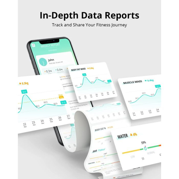 Oglejte si 16 edinstvenih meritev in prejmite hitre povratne informacije o tem, kako doseči zastavljene cilje. Svojo fitnes pot lahko celo spremljate in delite z drugimi.