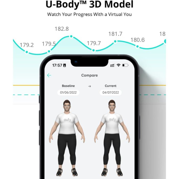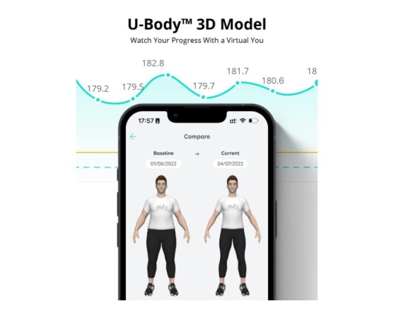 Z dnevnimi analizami podatkov in virtualnim modelom U-Body™ 3D spremljajte napredek svojega telesa na vaši fitnes poti.