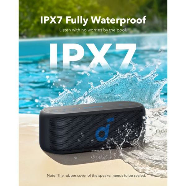 Popolnoma vodoodporen: Z zaščito IPX7 lahko brez skrbi poslušate glasbo ob bazenu, na plaži ali med dejavnostmi na prostem.