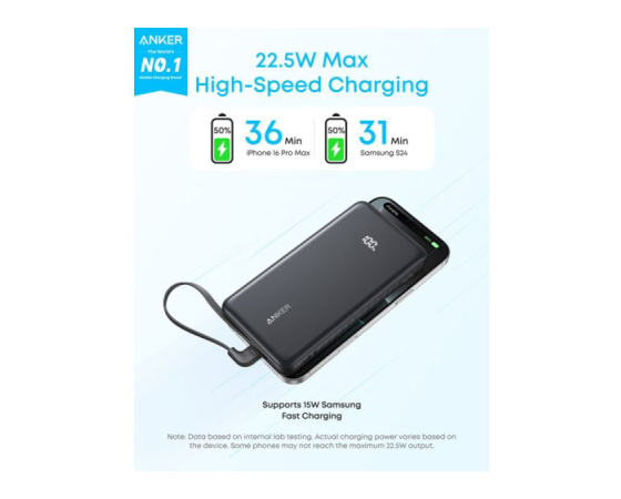 Kaj prejmete: Anker Zolo Power Bank (10K, 22,5 W, z vgrajenim USB-C kablom), uporabniški vodič.