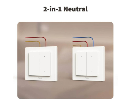 Stikalo Aqara Light Switch H2 EU podpira tako nevtralno kot breznevtralno ožičenje za enostavno namestitev.