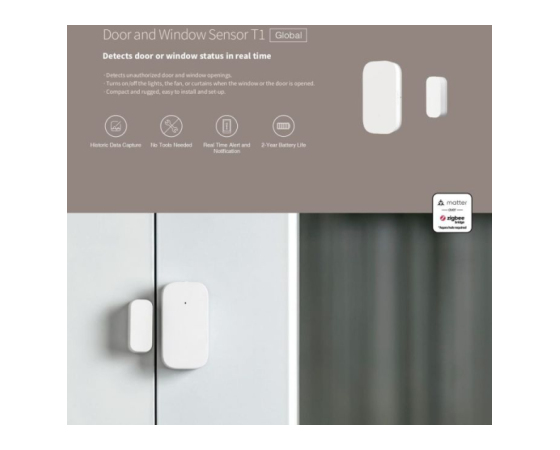Napredna tehnologija: Aqara senzor za vrata in okna T1 zazna trenutno stanje vrat ali oken prek razdalje med senzorjem in magnetom. Senzor je tudi energetsko učinkovit in ena baterija lahko ob normalni uporabi zdrži več kot 2 leti.