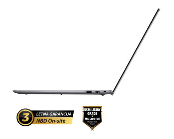 ASUS ExpertBook P3 je zasnovan z mislijo na udobje in produktivnost uporabnika. Strateška postavitev vhodno/izhodnih vrat na levi strani naprave omogoča nemoteno gibanje miške, kar ustvarja urejen delovni prostor, ki izboljšuje uporabniško izkušnjo.