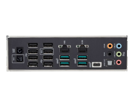 Za hitro in stabilno omrežno komunikacijo skrbi kombinacija 10G Ethernet in 2.5G Intel LAN, kar omogoča učinkovito delo z omrežnimi shranjevalniki, strežniki in velikimi datotekami. Plošča ponuja tudi bogato USB opremo, vključno s sprednjim in zadnjim USB 3.2 Gen 2x2 Type-C, ki omogoča izjemno hitre prenose podatkov in povezovanje sodobnih naprav.