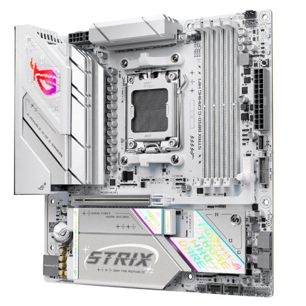ROG Strix B850-G Gaming WiFi je matična plošča formata micro-ATX, namenjena uporabnikom, ki želijo sestaviti zmogljiv, odziven in prostorsko učinkovito zasnovan računalnik. Podpira procesorje AMD Ryzen serij 7000, 8000 in 9000, kar omogoča širok nabor konfiguracij - od naprednih gaming sistemov do ustvarjalnih delovnih postaj. Stabilno napajalno zasnovo dopolnjuje učinkovito hlajenje, zato plošča zanesljivo deluje tudi pri večjih obremenitvah.