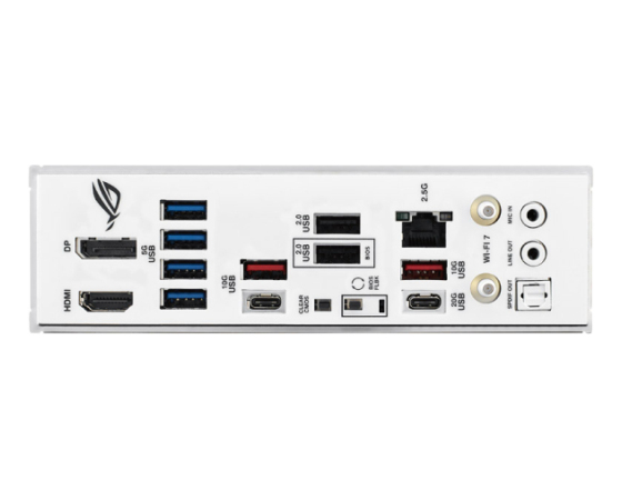 | Zunanji konektorji: | 1x USB 20Gbps (USB-C) 3x USB 10Gbps (2x USB-A, 1x USB-C) 4x USB 5Gbps (USB-A) 2x USB 2.0 (USB-A) 1x DisplayPort 1x HDMI 1x Wi-Fi modul 1x Intel 2.5Gb Ethernet 2x avdio priključka 1x optični S/PDIF izhod 1x BIOS FlashBack gumb 1x Clear CMOS gumb |