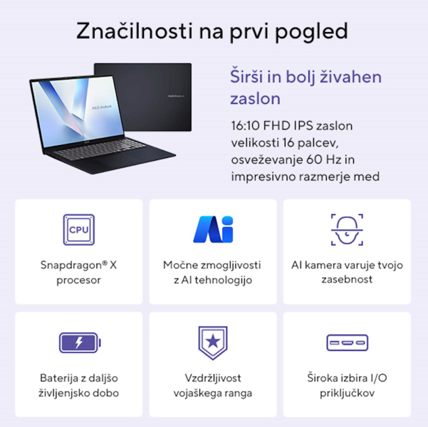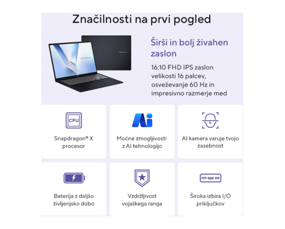 ASUS Vivobook 16 X1607QA-MB005W Snapdragon X1/16GB/SSD 512GB/16" WUXGA 1920x1200/W11Home