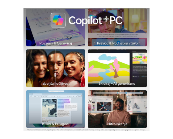 Tipkovnica in miška: slovenska, osvetljena z numeričnim delom in Copilot tipko; Miška: precizna drsna ploščica
