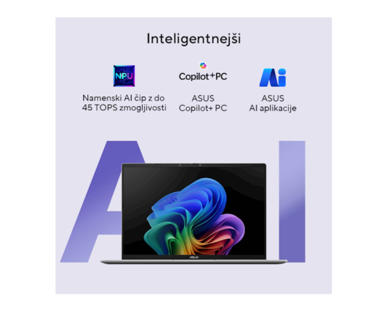 Vrsta procesorja: Snapdragon X X1 26 100 procesor (30MB, do 2,97 GHz, 8 jeder, 8 niti); Qualcomm Hexagon NPU do 45