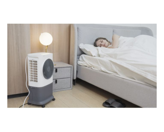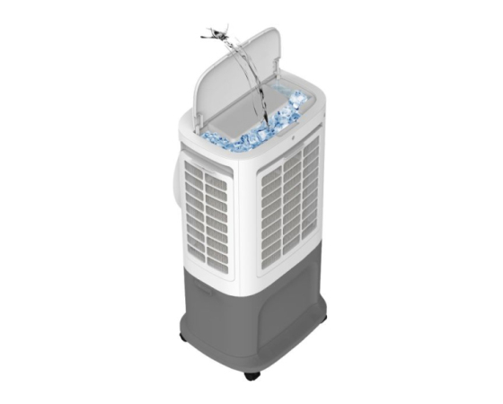 Vgrajena zaščita ob praznem rezervoarju za vodo in funkcija pomnjenja nastavitev ob izpadu elektrike zagotavljata dodatno varnost in udobje. Ta vrhunski zračni hladilnik je popolna izbira za prijetno hladen in svež zrak v vročih dneh – ne glede na to, ali ste v dnevni sobi, spalnici ali pisarni.