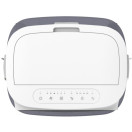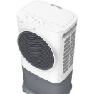 Upravljalna plošča z LED-zaslonom omogoča intuitivno upravljanje vseh funkcij. Hladilnik lahko priročno upravljate tudi z daljinskim upravljalnikom ali prek aplikacije z WiFi povezavo. Vhod za zrak je opremljen s tremi satastimi filtri, ki poleg učinkovitega hlajenja zraka prispevajo tudi k boljši kakovosti zraka. Voda se dodaja od zgoraj (top filling) prek popolnoma odstranljivega rezervoarja.