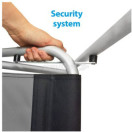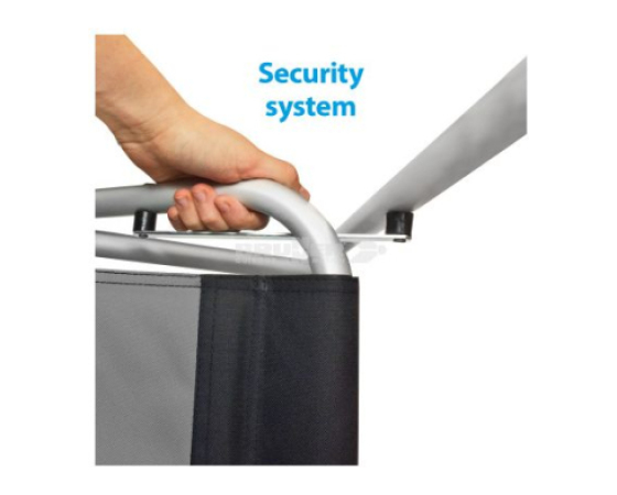 Režiserski stol z zložljivim ogrodjem iz anodiziranega aluminija. Trpežna prevleka je izdelana iz nedrsečega poliestra. Sedež, naslonjalo in nasloni za roke so oblazinjeni za večje udobje. Opremljen je z varnostnim mehanizmom za zlaganje.