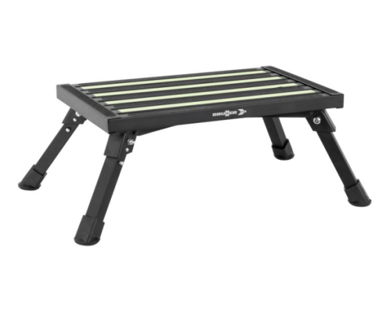 Založliva prenosna pručka - stopnička iz robustne plastike. Črna s fluo dodatkom je vidna tudi ponoči. Mere: 48x30x23