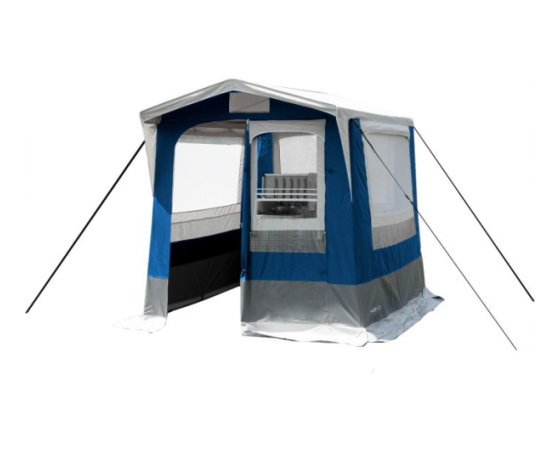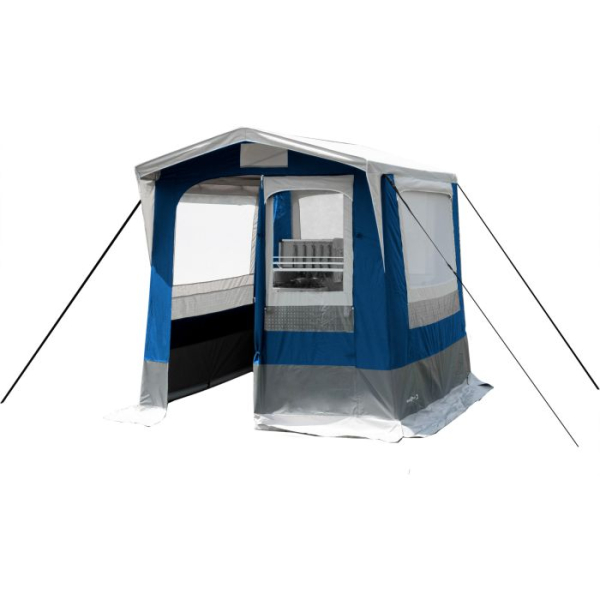 Gusto III NG je praktičen in stabilen kuhalni šotor z dvokapno streho, zasnovan za udobno in varno kuhanje na kampiranju. Zaradi premišljene zasnove nudi dobro zaščito pred vetrom, dežjem in umazanijo, hkrati pa omogoča odlično zračenje in naravno svetlobo.